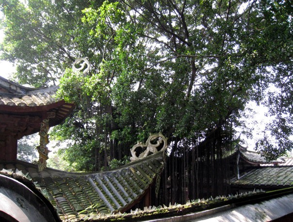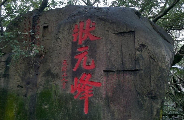 護國禪院之后的狀元峰,相傳因宋狀元陳誠之在此讀書而得名。附近有許多摩崖石刻,石刻被古榕樹根奇妙地包圍著,形成橢園型的大鏡面。