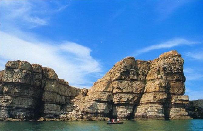高山島,屹立于廟島群島中部西側,隸屬砣磯鎮。這個面積僅有0.46公里的無居民小島,在諸島排列中列第12位。它集海蝕崖、海蝕洞、海蝕柱、海蝕礁、海蝕階地和海積卵石灘于一身;納高雄、險峻、幽深、粗獷靈秀于一隅。它裸露著胸懷,放蕩無拘地把海島的地質遺跡向世人全方位的展示,可謂長島地區地質遺跡的“天然地質公園”。