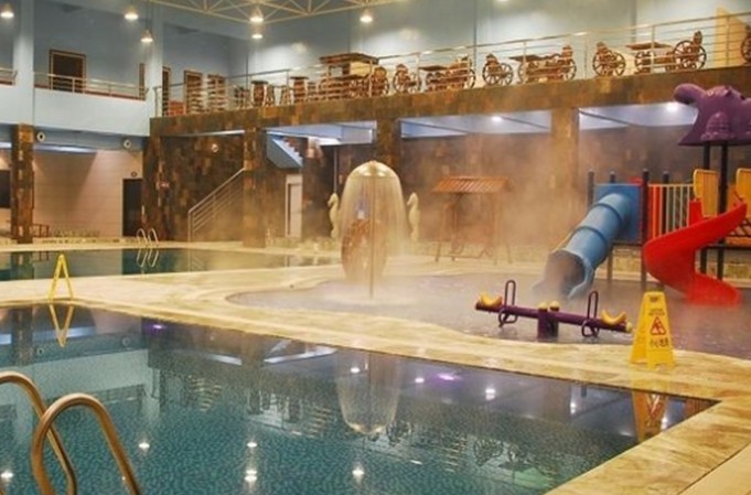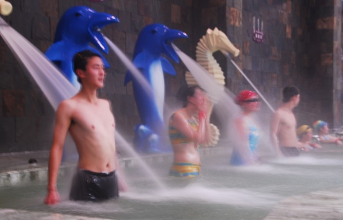 蓬萊三仙山溫泉游泳館位于八仙過海景區以東200米,和三仙山風景區相毗鄰,建設標準和檔次屬國內一流。配有溫泉游泳池及瀑布溫泉浴、沖擊浴、周身浴、玫瑰花浴、中草藥浴、針刺浴、腹部臀部減肥按摩浴,還有魚療池、水中健身池、兒童游樂池、中式桑拿、韓式桑拿、土耳其蒸汽浴、火炕、男女休息大廳、棋牌室、十個貴賓休息室(可欣賞三仙山美景),提供咖啡、品茶、飲料、酒水等服務,二樓設有休閑餐廳。