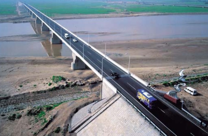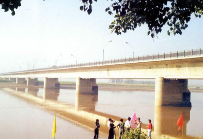 位于市南郊,它是從包頭市白云鄂博到陜西等省通衢的重要組成部分。大橋全長(zhǎng)810米,主孔12孔,每孔跨徑為65米,橋面寬12米,下部由14墩臺(tái)組成,上部構(gòu)造為預(yù)應(yīng)力鋼筋混凝土箱式連續(xù)梁,采用最新工藝多點(diǎn)頂推法施工。上部結(jié)構(gòu)為3聯(lián)4孔65米預(yù)應(yīng)力鋼筋混凝土連續(xù)箱梁,跨徑組合為3*(4*65)+20米,1983年建成通車,是黃河中上游最大的橋梁之一。設(shè)計(jì)荷載汽車—20級(jí);拖車—100級(jí)。