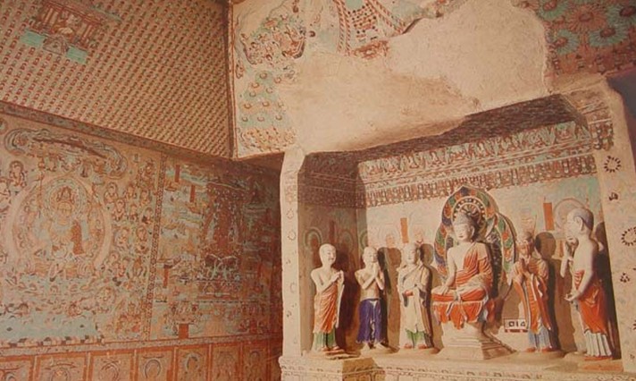 東千佛洞現(xiàn)存23窟,而留有壁畫和泥塑造像者僅10窟。其中西夏6窟、元1窟、清3窟。壁畫總面積486.7平方米。彩繪佛、道二教壁畫290幅,人物工144身,佛、道二教泥塑像46身。