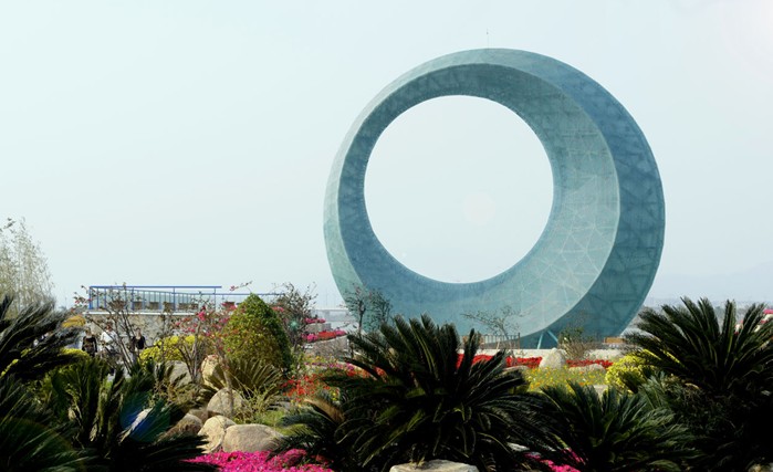 2100米長的園博大道從大門向大海深處延伸。說是大道,其實是一個帶狀景觀公園,按照金木水火土的理念設(shè)計建造。園博大道把9個島嶼串成了一條獨具南國特色的珍珠島鏈,各地園區(qū)星羅棋布分散在園博大道兩側(cè),游人置身其中就能領(lǐng)略到園博園別樣的風情。