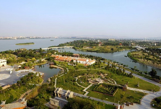 廈門園博苑的地址選在“華僑旗幟”陳嘉庚先生的故鄉(xiāng)——集美中洲島。園博園規(guī)劃片區(qū)總面積6.76平方公里,其中陸域面積3.03平方公里。主要包括園博園主展區(qū)、生態(tài)濕地公園、水景及水上運動、溫泉度假村等商業(yè)配套設(shè)施。園博園片區(qū)規(guī)劃以半島、島嶼的形式進行總體布局,由九個島嶼和兩個半島組成。其中五個為展園島嶼,四個小島為生態(tài)景觀島。以此為基礎(chǔ),分期規(guī)劃建設(shè)東邊的自然原生島、西側(cè)的杏林苑、中部的教育之園、石文化園和北側(cè)的山林休閑園,形成一片中央公園式的大綠地。