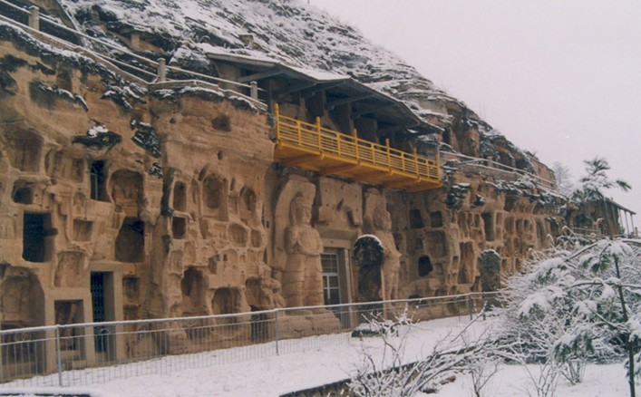窟龕因崖面自然形態分為上下兩層,以回廊石階貫通,布局有制,層次分明。特別是165洞窟高達14米,深15.7米,寬21.7米,規模宏大,全國罕見。文物保存完整,內容豐富,其歷史、藝術、科學、旅游價值很高。是世界石窟藝術的珍品,這里背山面水,自然風景典雅秀麗。春天姹紫嫣紅,鳥語花香;夏日泉水叮咚,涼風習習;秋季霜葉爛漫,碩果累累;冬至瑞雪紛飛,幽靜而壯觀,人文景觀獨特。石窟分上中下三層,其中以奚康生創建的一百六十五號窟為最大,它是以七佛為內容的大型窟。七佛造像宏偉精湛,莊嚴肅穆,不失北魏造像的光彩和魅力。伴之七佛而雕造的彌勒菩薩、騎像菩薩、手持日月的阿修羅都是富有藝術感染力的成功作品。除此而外,還有240號窟的北周造像,顯示了敦樸厚重的風度。北石窟寺以唐代窟最多,最有代表性的是建于武則天如意元年(公元692年)的32號窟。窟內的大小雕像面容豐腴,秀目含情,飄然欲動,姿態動人,堪稱盛唐藝術精品,唐代造像在藝術上達到了新的成就。窟內還保存著隋、唐、宋、金、西夏、元等各代的題記150多則,是研究歷史、書法的珍品。題記確切記載了石窟的開鑿年代,為研究歷代社會生活和發展變化,提供了很有價值的文字資料。這些綿亙千余年的雕刻藝術,凝結著勞動人民的智慧,是古代藝術匠師們辛勤勞動的結晶。為我們留下了豐富的精神財富。 北石窟寺以寺溝的窟龕最為集中,共編號 282個,窟群開鑿在高20米、寬 120余米的覆鐘山崖壁上,窟龕上下重疊多達3層。面向西,因周圍山崖石質屬早白堊紀黃砂巖,砂質均勻,膠結性能較好。造像可分為圓雕、半圓雕和浮雕等幾種。以北魏和唐代的最為精美。原窟龕內均有彩繪壁畫或圖案裝飾,現絕大多數已剝落無存。