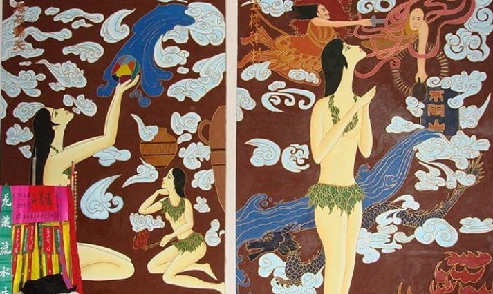 甘肅天水市秦安縣女媧祠的建造年代,目前可追溯到秦朝,距今已有2000多年的歷史。1986年,天水放馬灘出土秦墓木板地圖,其中繪制葫蘆河的2號圖標有一亭形物。據學者考證,此亭形物當為女媧祠。胡纘宗在《秦安志》中也記載,女媧祠“建于漢以前”。