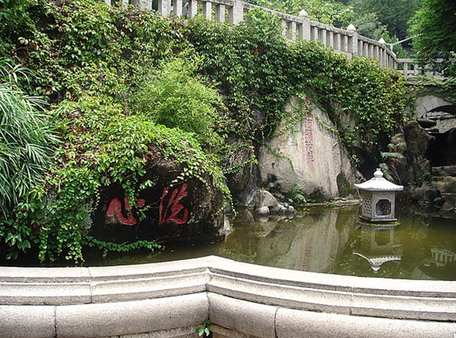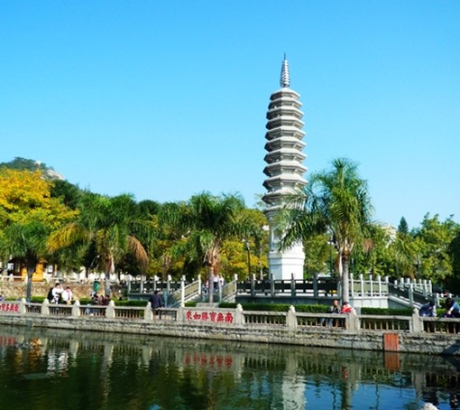 南普陀寺里有七座白玉如來佛塔和二座11層高的萬壽塔,那是1993年,1994年由信士捐建是萬壽塔前有個蓮花池,夏日荷花盛開時,藍天,白塔,綠葉,花海,展示這里是分外清靜高潔的佛門凈地。