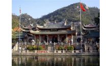 南普陀寺是廈門著名古剎,居于鷺島名山五老峰前,背依秀奇群峰,面臨碧澄海港,風景絕佳。始建于唐代,為閩南佛教勝地之一。寺內天王殿、大雄寶殿、大悲殿建筑精美,雄偉宏麗,各殿供奉彌勒、三世尊佛等。藏經閣珍藏佛教文物豐富多彩,有經典、佛像、宋代銅鐘、古書等,明萬歷年間血書《妙法蓮花經》和何朝宗名作白瓷觀音等最為名貴。寺宇周圍保留眾多題刻,著名的有明萬歷陳第、沈有容題名石刻和清乾隆御制碑。寺后崖壁“佛”字石刻,高一丈四尺,寬一丈。寺后五峰屏立,松竹翠郁,巖壑幽美,號“五老凌霄”,是廈門大八景之一。