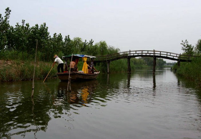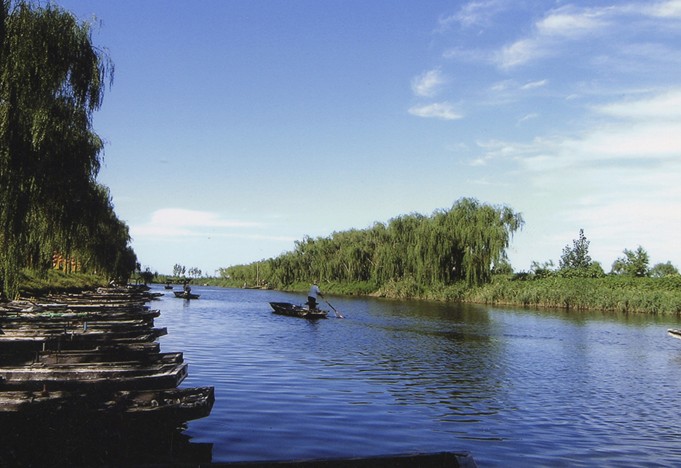 馬踏湖碧水瀅瀅,2100多條渠道交織成網(wǎng),四通八達。湖區(qū)27個自然村落,村村靠湖,家家連水,戶戶通船,門前搭起小橋,院后泊著小船,小橋流水人家,如詩如畫。因而,馬踏湖風(fēng)景區(qū)又有“北國江南”水鄉(xiāng)之美稱。
