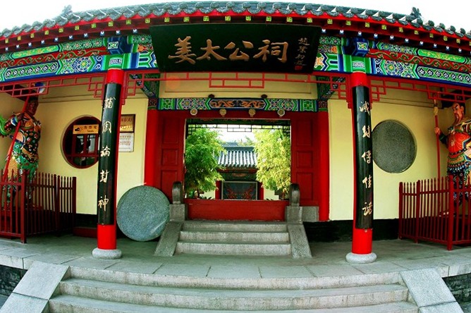 姜太公祠位于臨淄城區,1993年以姜太公衣冠冢為依托而建,總占地面積30000平方米。太公祠是一組中國傳統的中軸對稱、殿堂廟宇建筑。周文王訪賢遇到姜太公,遂請回拜為太師,尊稱太公望。周武王繼位又尊稱師尚父。姜太公輔佐周王朝滅掉殷商,以首功被分封到了齊國。太公治理齊國,采取“因俗簡禮和通商工之業,便魚鹽之利”等政策,注重農、工、商并舉,大力發展生產,齊國很快強大起來。