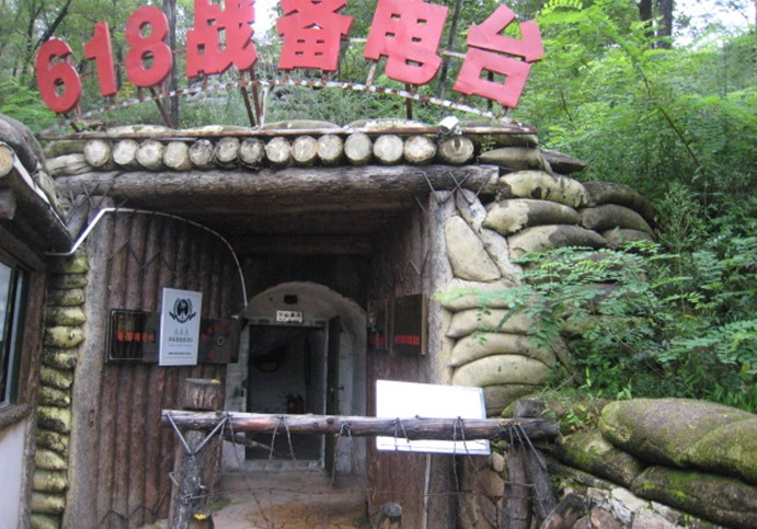 618戰備電臺,原為山東人民廣播電臺戰備臺,是華東地區規模最大、保存最完整的一處戰備電臺。它是二十世紀六十年代為適應國防需要,由時任濟南軍區司令員的楊德志將軍親自選址興建的,位于山東省淄博市沂源縣魯村鎮峨峪村北山中。海拔高度400米,相對高度200米,占地面積229畝,發射功率50千瓦,能夠覆蓋淄博、臨沂、濰坊、泰安等13個市縣。電臺機房設在山中坑道內,坑道總長470米,施工面積2820平方米。