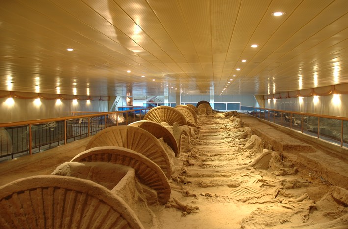 春秋殉馬坑殉戰車10輛,馬32匹,規模之大,配套之齊全,馬飾之精美,為當代全國之冠,列全國十大考古發現之一。古車陳列展廳陳列后李車馬坑出土的各類車和臨淄地區出土的古代車的復原車,直至全國出土的各類古代車復原車。集中國古車研究成果之大成,薈華夏歷代車乘珍品之精粹,充分展示了我國車乘的悠久歷史和造車技術在世界車輛發展史上的領先地位.