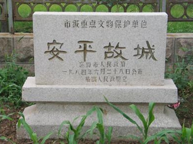 安平城近似長方形,唯東南角向內凹進,南北長約2000米,東西寬約1800米,總面積達3.6平方公里。1973年和1981年,省考古部門先后對安平故城進行了兩次普查,發現城垣大部分夷為平地,僅東北角稍有殘存,高出地面2米,長約50米,系夯土建造,夯層厚20厘米,夯窩直徑5.5厘米。安平故城遺址,1984年被淄博市人民政府公布為市級重點文物保護單位。