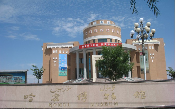 哈密博物館成立于1988年,位于市廣東路360號。2002年6月由廣東省人民政府援建的南粵文化中心遷入。博物館有展廳面積800余平方米,庫房面積300平方米。館內收藏有原始社會至明清時期的石器、青銅器、陶器、木器、鐵器、毛布、清代服飾和干尸等文物12000余件,其中17(類)件為國家一級文物。