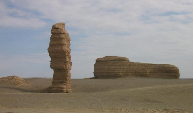 烏爾禾風城又稱魔鬼城,位于新疆維吾爾自治區克拉瑪依市烏爾禾區境內,距克拉瑪依市東北90千米,烏爾禾鄉東約5千米,東經85°19′,北緯46°6′(217國道310千米以東),地面海拔高程300--500米,平均海拔380米。烏爾禾呈北西一南東走向,長約5千米,寬約3千米,面積約15平方千米,由一系列近北西一南東走向的孤立臺地組成。 臺地高10—50米,由廣泛出露的白堊系下統吐谷魯群構成,主要巖性為淺水湖泊相灰綠色細砂巖與棕色、褐紅色泥巖、砂質泥巖,吐谷魯群略呈水平狀,向東南方向微傾,傾角約5度。屬典型的雅丹地貌,是受風力和流水作用的影響形成的。在這一大片區域內,分布著大量奇形怪狀的巖山,可以給人想象成各種詭異的事物,而且風刮過這些巖石的時候,因為分布的關系,會發出鬼哭狼嚎的聲音,所以叫做魔鬼城。這種丹霞地貌在戈壁中很常見。