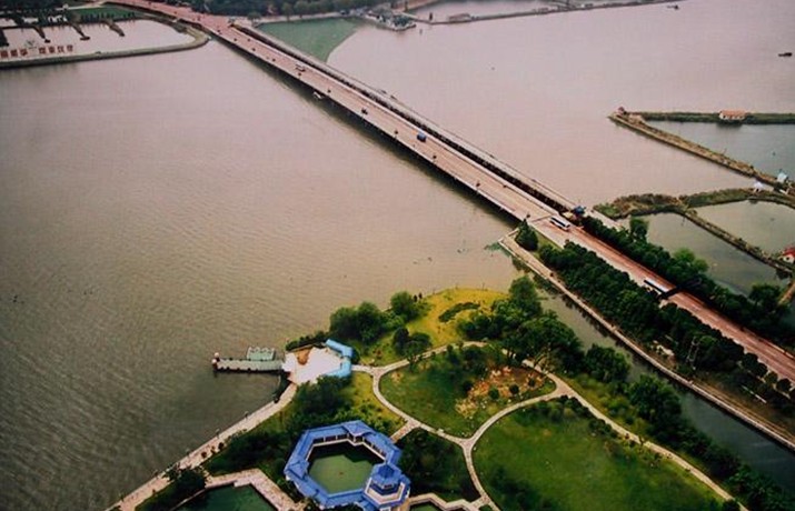湖心亭位于大湖東北部之湖心島上,1959年建,磚木結構,四方八角,古典形式,建筑面積112.84平方米。亭周圍繞以100米道板路。