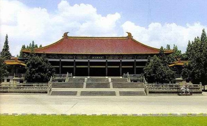 1933年,由我國近代民主革命家、教育家,時任國立中央研究院院長的蔡元培先生倡議創建的國主中央博物院籌備處落成。蔡先生親自兼任第一屆理事會理事長,在中山門半山園征地12.9公頃,原擬建“人文”、“工藝”、“自然”三大館,后因時局關系,僅建“人文館”,即現在的南京博物院大殿。該建筑為仿遼代宮殿式,由民國著名建筑師徐敬直設計,經建筑大師梁思成修改,1936年6月開始興建,1947年告竣,為博物院主樓。整個大殿雄偉壯觀,是近代建筑史上的杰作,其結構部分按《營造法式》設計建造,某些細部和裝飾兼采唐宋遺風。