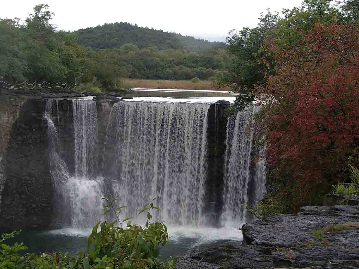 冬季枯水期,瀑布不見了,卻可以觀賞到另一番景致。在熔巖床上,游人可發(fā)現(xiàn)許多被常年流水沖擊的熔巖塊因磨蝕而形成的大小深淺不等的溶洞。這些溶洞,猶如人工鑿琢般光滑圓潤,十分別致。