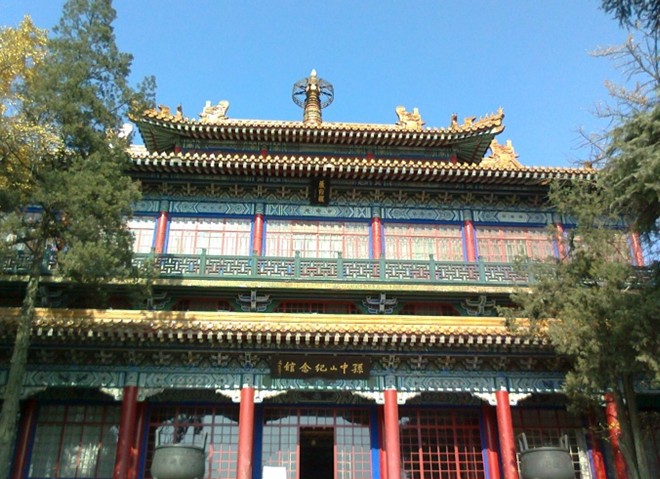 孫中山紀念館有多處,這里主要介紹南京孫中山紀念館。孫中山紀念館,原名藏經樓,位于中山陵與靈谷寺之間的密林中,是一座仿清代喇嘛寺的古典建筑。主樓高20.8米,頂上蓋綠色琉璃瓦,屋脊為黃色琉璃瓦,正脊中央飾有紫銅回輪華蓋,梁、柱、額枋均飾以彩繪。樓內珍藏孫中山先生的經典著作和奉安照片等珍貴史料。樓前廣場正中的花臺上豎有一尊高2.6米的孫中山先生全身銅像。