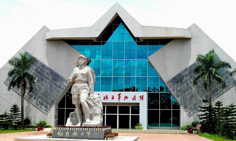 紅色娘子軍紀念雕像將紅軍女戰士腳穿草鞋、肩背竹笠、風塵仆仆的一代巾幗英雄的氣概充分展現。