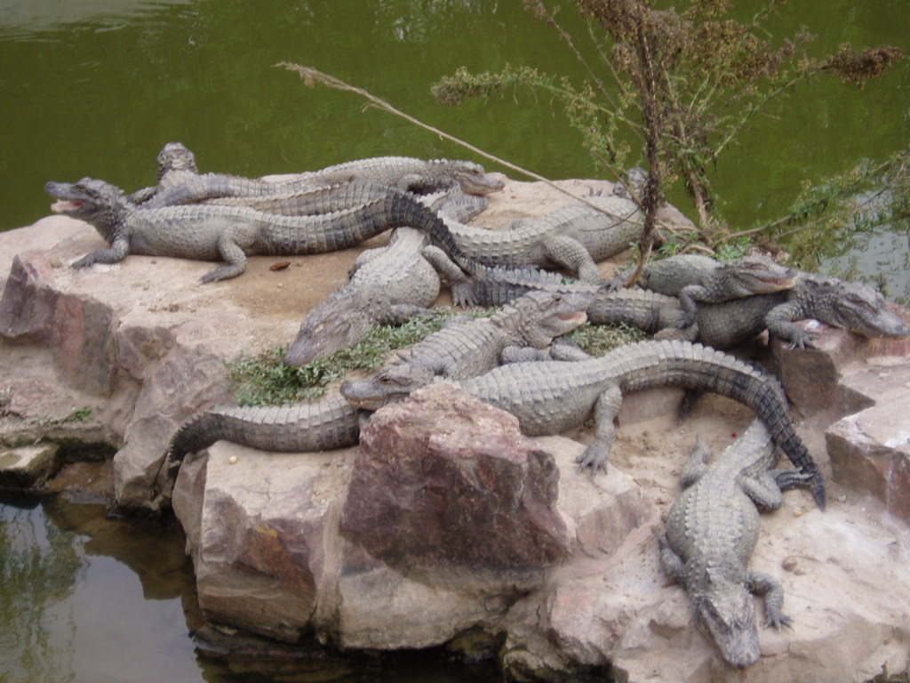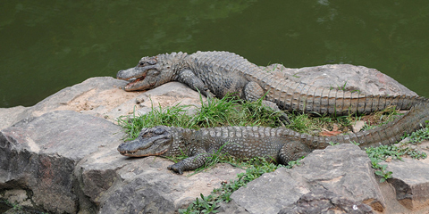 上海野生動物園的鱷魚島現(xiàn)有揚子鱷31條。