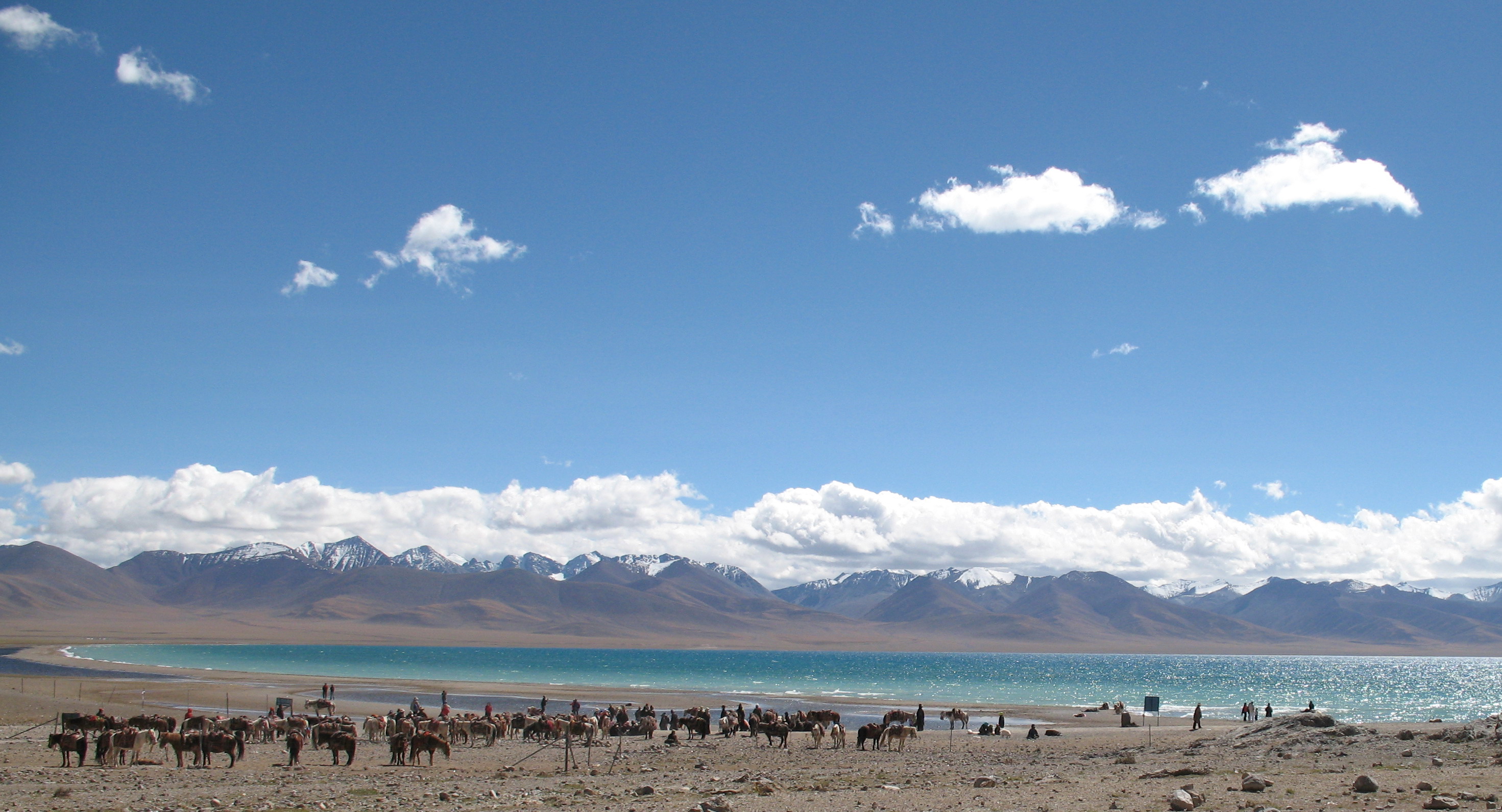 中國西藏自治區最大的內陸湖,也是世界上最高的咸水湖。有大小湖泊1500多個。蒙語和滿語稱“騰格里諾爾”,藏語納木湖意為天湖。位于拉薩以北當雄縣和那曲地區班戈縣之間。在念青唐古拉山主峰以北,距離拉薩240公里。是西藏第一大咸水湖也是我國第二大咸水湖(在20世紀70年代以前為我國第三大咸水湖,自從羅布泊干涸后成為我國第二大咸水湖),世界海拔最高的大湖。湖泊形成和發育受地質構造控制,是經喜馬拉雅運動凹陷而成,為斷陷構造湖,并具冰川作用的痕跡版權所有聊城聊之旅旅行社有限公司,轉載必究!。湖水在不斷退縮,至今湖周圍留有數道古湖岸線,最高一道距湖約有80米。納木措南面有終年積雪的念青唐古拉山,北側和西側有高原丘陵,廣闊的湖濱,草原繞湖四周,水草豐美。湖水含鹽量高,流域范圍內野生動物資源豐富,有野牛、山羊等。湖中多野禽,產細鱗魚和無鱗魚。湖水清澈,與四周雪山相映,風景秀麗。