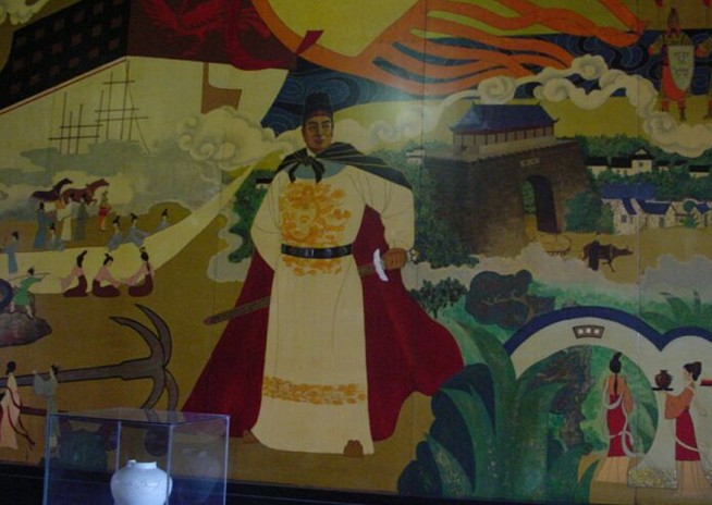 黑色方正的大理石底座上刻著:鄭和(1371-1435)幾個金燦燦的大字。鄭和炯炯的目光中包含著愛國主義激情和民族自豪感。版權所有山東聊城聊之旅國際旅行社有限公司,轉載必究!他的出使,是和平之舉,完成著傳播和平與友好使命。座像背后與左右兩側墻面上三幅巨型磨漆壁畫《鵬起瀏江》,面積達八十平方米,它不僅再現了當年鄭和奉召首次從瀏河下西洋,訪問東南亞、東非各國出洋時的壯觀場面,更具有獨特的藝術效果--三幅壁畫金碧輝煌,氣勢磅礴,畫面線條流快明暢,人物栩栩如生,富有鮮明濃郁的民族風格。鄭和船隊中十幾艘寶船“云帆高張、晝夜星馳”,無論從大廳的哪個角度看,都給人以那船是迎面駛來的感覺。