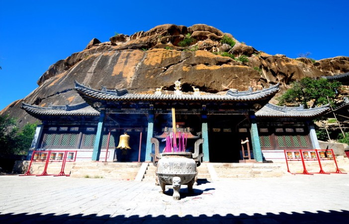 遼代石窟“真寂之寺”即林東后召廟石窟寺。其寺位于遼上京南15公里的山谷中。石窟開鑿在桃石山東南面陡壁上,分中、南、北三窟。窟前是清代續建的喇嘛廟“善福寺”。中窟眉額刻“真寂之寺”四個大字,當為遼代開鑿石窟的題名。“真寂”二字與中中窟內釋迦牟尼“圓寂”之意相合。窟內釋迦臥佛像周圍有佛弟子像若干,做悲哀狀。窟壁有千佛像百余尊,形象各異,南窟雕像中間為佛,騎獅子和象的文殊、普賢二菩薩分列兩邊,又有供養人服侍,窟門口有金剛力士像。北窟分內外兩室,外室雕像同于南窟,內室造像均為浮雕,有佛、弟子和供養人,兩側刻有胡服裝束力士像一對,頗具特色。桃石山谷口兩側緣石壁立有兩尊金剛力士浮雕,十分生動,一東一西,各自把定金剛杵,足踏耐熏二鬼,另在巖壁和巨石之上多有清代陽刻梵文:“六字真言”。 版權所有山東聊城聊之旅國際旅行社有限公司,轉載必究!“真寂之寺”附近的山谷中還有石窟若干,其中有遼史所記弘福寺及開化寺遺址,諸多跡象表明這里是遼、清兩代弘揚佛法的對地。