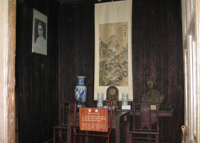 右邊并列的兩間客房,是當年朱自清的書房和臥室。也是朱自清和他夫人陳竹隱的新房(1931年初,朱自清和陳竹隱訂婚,后朱自清去歐洲留學。回國后在上海舉辦了婚禮,然后攜新婚妻子回揚州在此居住)。屋中陳列的書櫥、煙斗和文房四寶是朱家后人捐獻的朱自清生前遺物,現在都已成為珍貴的文物。