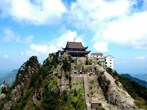 坐落在安徽省,是地藏菩薩的道場,中國四大佛教名山之一,全國著名游覽避暑勝地。九華山北俯長江,南望黃山,東監太平湖。 它以佛教文化習俗和奇麗的自然風光享譽海內外,尤其在東南亞華人世界更具盛名。 九華山素有九十九峰之稱,千米以上的高峰20多座,為首的是十王峰。天臺,天柱,獨秀,花臺,云外峰如臺似柱,聳入云霄;蓮花,芙蓉,翠屏,以微,翠蓋峰有芙蓉出水之姿“間聳航”,“雄叫天門”等茂石更是神工鬼斧。山間秀溪縈環,銀瀑飛,景色迷人。優美傳奇的舒印月和九子泉聲更富山水之情,給人以美的享受。古稱陵陽山、九子山,唐天寶年間改名九華山;因有九峰形似蓮花而得名