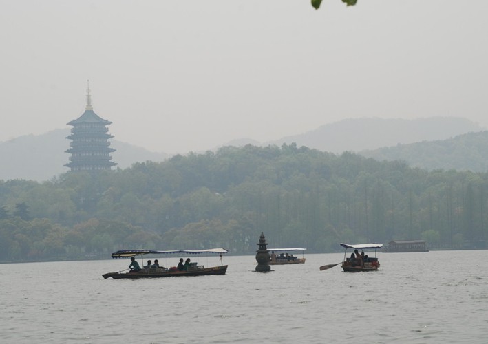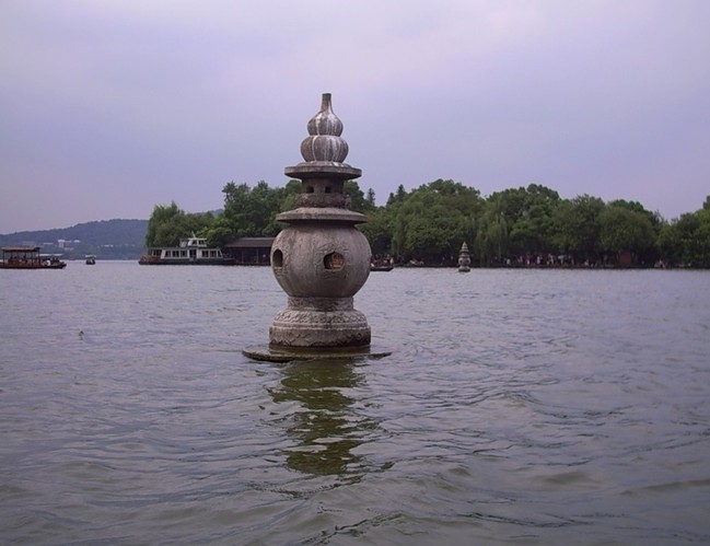 據說,三潭印月的三座石塔,就是香爐的三只腳。又因為香爐里的一爐香灰倒翻在西湖里,從此,西湖泥都成了香灰泥。