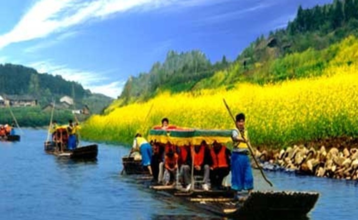 奇:河谷兩岸,奇石林立,河床全由罕見的青石板構成,最長處達86米,落差12米,漂行其上,猶如在奇石上飛翔,盡展豪情壯志,全國獨一無二。
