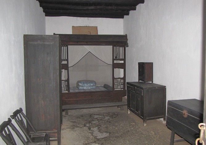在堂屋的右邊是一間小臥室,是董必武當(dāng)年出生的地方,也是1910年董必武與黃俊貞同志結(jié)婚的房間。房間內(nèi)很簡樸,只有一張床和兩口木箱。在這間臥室,董必武的母親生下了他們姐弟四個,兩個姐姐,一個弟弟——董覺生。