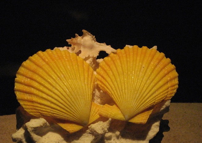 走進貝殼展廳,仿佛走進夢幻般的海底世界。曲徑通幽的貝殼展廳以藍色為設計主調,四壁墻面除陳列貝殼展品用的櫥窗外均漫畫式的畫滿各種海藻、水草和海洋生物。地面墻角用鵝卵石和沙子堆積,然后用珊瑚、貝殼、海星、海龜等標本點綴,營造出一種神奇的海底景觀。展廳四周的櫥窗內陳列了300多種來自世界海洋最具代表性的貝殼,有展翅欲飛的“天使之翼海鷗蛤”、潔白如玉的“白鉛螺”、金光燦燦的“黃金寶貝”、色彩絢麗的“澳洲海扇蛤” 、形似眼睛的“貓眼蠑螺”、還有著名的活化石“紅翁絨螺”和“鸚鵡螺”…… ,這些形形色色、千姿百態的貝殼在燈光的映襯下就是一件件來自海洋深處的藝術珍品,讓游人在觀賞之后不僅驚嘆大自然鬼斧神工,同時激發他們熱愛大自然、保護海洋的情感。
