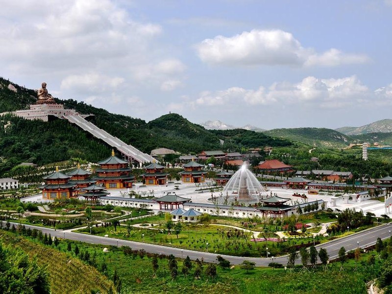 釋迦牟尼坐佛造像,選材錫青銅鑄造,大佛高38.66米,重380噸。由232件佛體、108塊蓮花瓣、302個發髻、共642塊,錫青銅鑄件組合而成,堪稱目前世界第一大銅鑄佛。大佛右手作“施無畏印”,左手作“施與愿印”, 版權所有聊城聊之旅旅行社有限公司,轉載必究!表示佛為眾生拔除苦難,給予幸福。蓮花座下建有功德堂、萬佛殿和佛教歷史博物館。萬佛殿內陳列著9999尊造型逼真,栩栩如生的金銅佛像,與大坐佛共同構成了萬尊佛像的宏大陣容,佛教歷史博物館內展示了佛教文化興起興盛的歷史記載,館內陳列展出了釋迦牟尼佛舍利等數十件文物和佛教文化藝術珍品。南山大佛熔古今中外佛像鑄造藝術的精華,使古老的青銅鑄造藝術和現代科技成果于一體,展現了佛教文化和現代文明的完美結合。