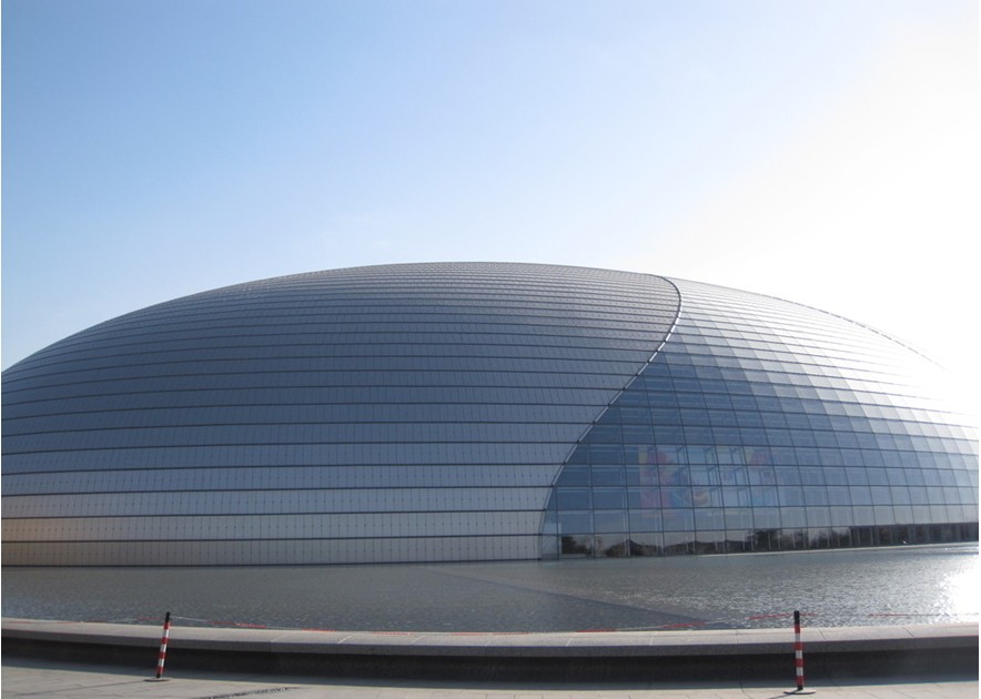 國(guó)家大劇院造型新穎、前衛(wèi),構(gòu)思獨(dú)特,是傳統(tǒng)與現(xiàn)代、浪漫與現(xiàn)實(shí)的結(jié)合。
