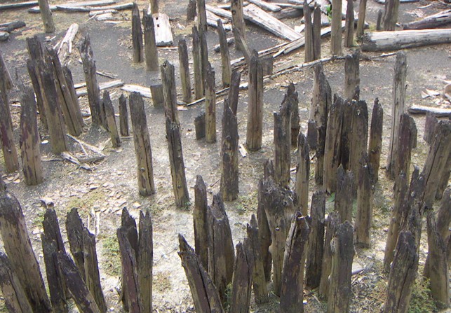 遺址現(xiàn)場展示,西位于博物館東南100米處占地面積2300平方米。以考古發(fā)掘場景復(fù)原和“干欄式”建筑重建,先民生產(chǎn)生活場景再現(xiàn)為文體內(nèi)容。在2800平方米考古發(fā)掘現(xiàn)場內(nèi)布滿密密麻麻的木建筑構(gòu)件和散布其間的文物,不由得讓人回想當(dāng)時土破驚天的場面。在復(fù)原的"干欄式"建筑內(nèi)外布置著各類生活、生產(chǎn)場景,婦女們紡紗織布,男人們斫木蓋房。有的磨制骨器,有的搗谷脫殼,有的和泥制陶,有的凝神雕刻,使人仿佛回到了遠古時代,親身體驗先民創(chuàng)造燦爛文化的過程。在現(xiàn)場展示區(qū)還有河姆渡古生育 文化園,由著名學(xué)者費孝通題名,向游客介紹河姆渡先民的生育理念和生育行為。