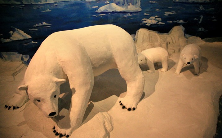 武漢東湖海洋世界企鵝館,面積共有500多平方米,分為觀展廳和飼養廳兩部分 。觀展廳內用水泥和白漆等建筑材料,裝飾成冰天雪地的極地景觀,可以容納400余人,是目前國內最大的企鵝飼養展館。除了惹眼的企鵝、北極熊和海象雕塑,還有一座閃爍著奇幻彩燈的愛斯基摩人冰窟。企鵝房大約有70平方米,仿照南極環境建成,分為岸上、水上兩個活動區域。藍色的水泥“陸地”打磨得十分光滑,因為在粗糙的地面上,企鵝的腳容易受傷。潔白的“冰川”,給人以涼爽舒適的感覺。企鵝平時在陸地上進餐、睡覺、玩耍,玩膩了,可以一個猛子扎到水里游泳。它們的一舉一動,透過寬大的落地玻璃可以看得一清二楚。