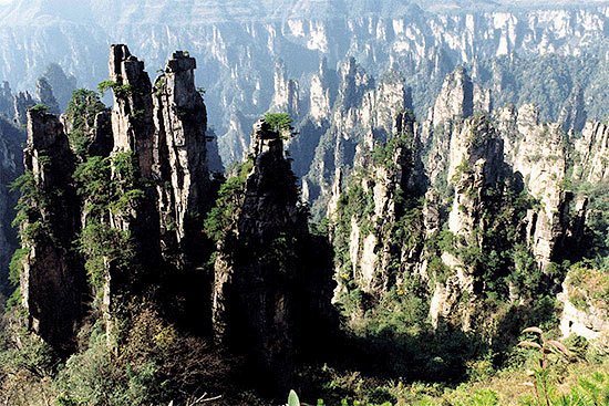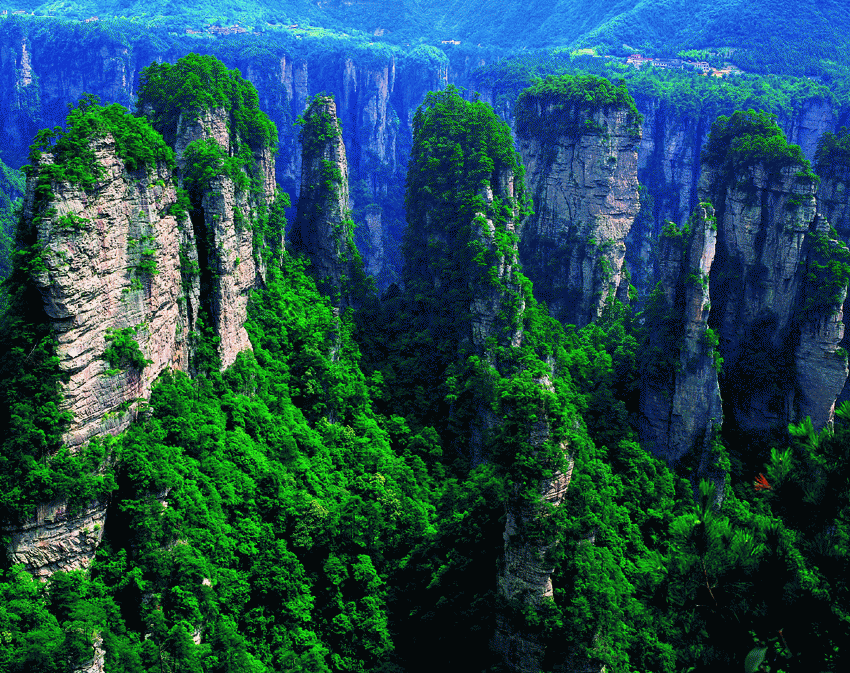 武陵源屬世界上罕見的砂巖風林地貌,整個景區內,溝壑縱橫,巖峰高聳,綠樹翠曼,獸鳥成群,有“大自然迷宮”、“天下第一奇山”這美譽。億萬年前,這里曾是一片波濤翻的海洋。歲月悠悠,滄海桑田。大自然威力無邊的“燕山運動”,將這里逐漸抬升為陸地、山脈、江河,隨后又以揮灑自如的鬼斧神工在這里“穿透切割”、“精雕細琢”,從而有了今天這般個有原始生態體系的砂巖、峰林、峽谷地貌,構成了溪水潺潺、奇峰聳立、怪石崢嶸的獨特自然景觀。