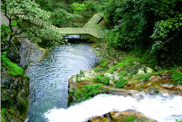 石龍峽風(fēng)景區(qū),是九宮山風(fēng)景區(qū)的重要組成部分,位于銅鼓包西側(cè)的三峰山北麓。這是一條南北向的山谷,海拔高程1400米至500米。東經(jīng)114度88分,北緯29度23分--25分。直線距離約5公里。南口在三峰山下銅金公路邊,北口在三級電站南500米處。全景區(qū)以石階、石徑貫通,石階約5000級,最大坡度45度,石徑寬一米,石階石徑以花崗石料石砌成 。為跨越山溪,建有石拱橋七座,鐵索橋二座、跳石、棧道各一處。在橋頭、景點多建有平臺,以觀景休息。景區(qū)中以崖、石、樹、瀑、潭等組成的自然景觀,明代的通山縣禮部侍郎朱庭吏所筑的兩崖行窩,和明末清初的懶拙和尚野居處,皆在北山谷中,是很重要的人文景觀。