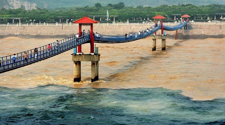 風景區小浪底水利樞紐區。有1667米處,體積達5185萬方的亞洲第一土石大壩;有世界上最大的地下廠房、進水塔、消力塘。工程以防洪、防凌、減淤為主,兼顧灌溉、供水和發電。在小浪底洞群調水調沙期間,六龍噴水,黃白兩色交織,形成浪底云煙,驚濤拍岸,氣勢磅礴,彩虹高懸,不是瀑布勝似瀑布。