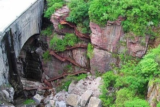 云臺山疊彩洞是連接豫晉兩省的公路隧洞,是修武人民戰(zhàn)天斗地的杰作,前后歷時(shí)八年開筑而成。大小二十三條,首尾相連,總長4000多米,在峭壁間重疊直上。洞之間隙,可遠(yuǎn)觀平川,近觀懸崖,上觀奇石,下觀溝谷,聽鳥語泉聲如琴鳴,聞花香嵐氣沁肺腑。點(diǎn)內(nèi)奇石林立,有“蝸牛爬山”、“軍艦巡山”、“茅筍入云”、“下不來”、“赤兔受驚”、“雙鶉斗”、“一線天”以及中國科學(xué)院命名的稀有多年生薔薇草本花木“太行花”。出“疊彩洞” 便到 “三秀峰”,峰上有一奇石,高約40米,亭立在百花翠林之中,從不同角度觀看,則變幻為大靈芝、秀麗的村姑、著長裙攀山的摩登女郎。其峰含山秀、石秀、花木秀之意。過“三秀峰”即到“西瀛觀”。向西俯視,高峽平湖,盡收眼底。版權(quán)所有山東聊城聊之旅國際旅行社有限公司,轉(zhuǎn)載必究!有“已入瀛洲遠(yuǎn),誰言仙路長”的詩意。向南恰有“佛龕峰”迎面而立,又有佛祖升西天,“佛去龕空留”之意境。