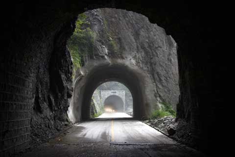 云臺山疊彩洞是連接豫晉兩省的公路隧洞,是修武人民戰(zhàn)天斗地的杰作,前后歷時(shí)八年開筑而成。大小二十三條,首尾相連,總長4000多米,在峭壁間重疊直上。