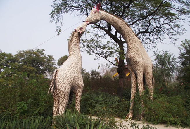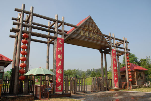 游覽區有槐樹、蒼松、綠椰等各種樹木20多萬株,翠竹10余萬株,綠化面種占90%以上。有桃花林、櫻花林、槐花林?;ɑ軈^有牡丹園、月季園、玫瑰園、菊花園等,百花競放,姹紫嫣紅。動物放養區,養有駱駝、鴕鳥、山羊、銀雞、孔雀、鶴等,供游人觀賞逗趣。新建的滑草坡、情人橋、逍遙島、月亮湖、千秋湖等景觀。船停碧波上,人在畫中游。還設有菊花培育基地,培植各種菊花精品。