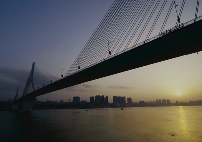 夷陵長江大橋位于湖北省宜昌市,是聯系宜昌市南、北兩岸跨越長江的城市橋梁。于1998年11月28日動工,2001年12月竣工通車, 總投資6.1億元人民幣。橋位距葛洲壩水利樞紐大壩下游約7.6km,橋址區江面寬約800m,最大水深約23m。版權所有山東聊城聊之旅國際旅行社有限公司,轉載必究!建設結合橋址區航道具體情況,大膽創新,首次提出單索面三塔斜拉橋方案,其2 x 348m的主跨為國內第一,在同類型橋梁中亦屬世界首位。大橋工程全長3.246km,設計荷載:汽車-超20級,主橋是國內第一座單索面預應力混凝土三塔斜拉橋,跨度(m)布置為38+38.5+43.5+2x348+43.5+38.5+38八跨連續,主橋長936m,總投資6.136億元。版權所有山東聊城聊之旅國際旅行社有限公司,轉載必究!主橋橋面寬23.0m,設四條機動車道,車道外側各設2.0m寬人行道,橋面中間索區寬3.5m。
