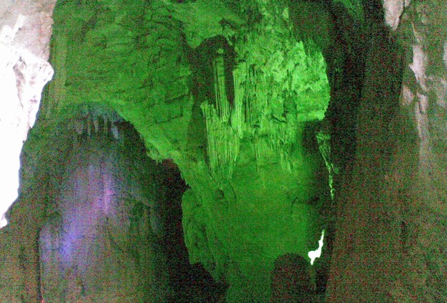 三奇:洞內(nèi)水聲如潮。洞分上下兩層,水流相通,水勢湍流,落差高達(dá)50米;