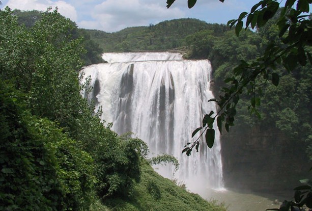 陡坡塘瀑布位于黃果樹瀑布上游1公里處,瀑頂寬105米,高21米,是黃果樹瀑布群中瀑頂最寬的瀑布。陡坡塘瀑布頂上是一個面積達1.5萬平方的巨大溶潭,瀑布則是形成在逶迤100多米長的鈣化灘壩上。陡坡塘瀑布還有一個特殊的現(xiàn)象:每當洪水到來之前,瀑布都要發(fā)出“轟隆.轟隆”的吼聲,因此又叫“吼瀑”。 版權(quán)所有山東聊城聊之旅國際旅行社有限公司,轉(zhuǎn)載必究!“遙聞水聲轟轟,從隴隙北望,忽有水自東北山腋瀉崖而下,搗入重淵,但見其上橫白闊數(shù)丈,翻空涌雪,而不見其下截,蓋為對崖所隔也。”這是徐霞客在《徐霞客游記》中對陡坡塘瀑布的描述。