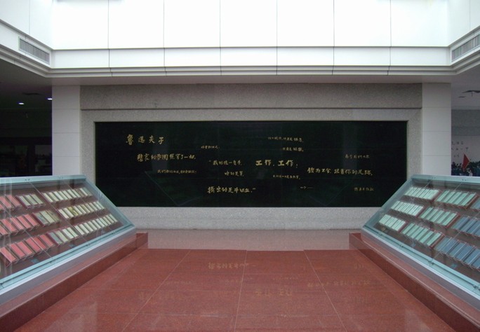 紹興魯迅紀念館“魯迅生平事跡陳列廳”本身是一座富有紹興特色和時代特征的現代化展館,造型簡潔平和,樸素無華,充分體現了魯迅精神的人文內涵。內部采用雕塑、不銹鋼裝飾墻面,以現代化展示手段加強了紀念館建筑的文化內涵和藝術感染力。建筑與水景縱橫交錯,室內外空間相互滲透,構成了一個充滿靈氣的具有紹興特色的現代展館。鑲嵌在陳列廳正面墻上的“紹興魯迅紀念館”七個大字為郭沫若所題。