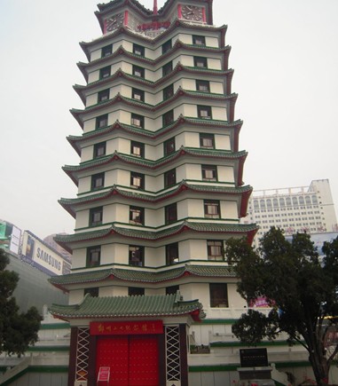 二七紀念塔,位于鄭州市二七廣場,建于1971年,鋼筋混凝土結構, 是我國建筑獨特的仿古聯體雙塔,它是為紀念京漢鐵路工人大罷工而修建的紀念性建筑物。2006年被列為全國重點文物保護單位,中國最年輕的全國重點文物保護單位(建于1971年,距今僅有不到四十年的歷史)。