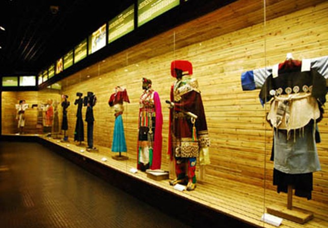 旨在體現(xiàn)各民族豐富多彩的服飾文化和紡織、印染、刺繡等傳統(tǒng)手工工藝。以服飾的發(fā)展過程為線索,展示從樹皮衣 到以火草棉麻為原料的各民族日常服飾;集中展示了具有特定功能、不同角色和年齡的服飾文化,從色彩斑斕的服飾中折射出云南各民族豐厚的文化底蘊(yùn)。