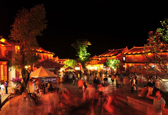 四方街最迷人的是晚上,沿河都是些大大小小的酒吧,茶樓。其中不乏外國人經營者。這些酒吧,茶樓門前,大紅燈籠型狀各異,高高的懸掛在每戶人家門前。晚間的四方街就這樣籠罩在溫暖祥和的氣氛中。版權所有山東聊城聊之旅國際旅行社有限公司,轉載必究!紅燈籠的倒影隨河水飄蕩,約約綽綽。這里是歷代集市中心,每日萬頭躦動,熱鬧非常。從四方街四角延伸出四大主街,直通東南西北四郊,又從主街岔出眾多街巷,如蛛網交錯,往來暢通。街道全用五彩石鋪砌,平坦潔凈,晴不揚塵,雨不積水。幾乎每條街道一側都伴有潺潺流水。由此形成以四方街為中心,四周店鋪客棧環繞,沿街逐層外延的稠密而又開放的格局,古老的集市就這樣孕育了城市最初的形狀,這與中國傳統的四四方方的井字形街道是不是一樣的。